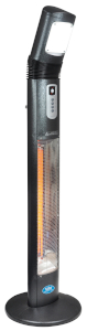 Our free standing Sol Rey outdoor heater is splashproof, making it ideal for use outside and perfect for heating an area on your patio, garden or outdoor entertainment space. This outdoor patio heater includes a PIR economy feature which automatically turns off the heating when no movement is detected. Additional features include a tip-over safety cut-out and overheat safety cut-out, with built-in castors, carry handle and cord storage for easy manouverability (once the heater is sufficiently cool). This patio heater can also be used to keep an area in a tent or marquee warm (depending on there being sufficient safety clearance above and around the unit).